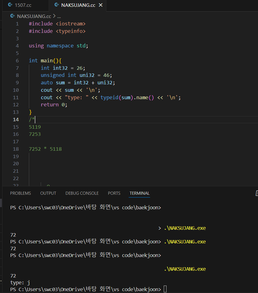 cout << "type: " << typeid(sum).name() << '\n';
